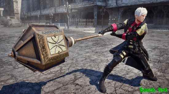以一击的破坏力,及容易破坏敌人姿势为魅力的大型武器。拥有跳起后进行重击,或于自身周围产生冲击波的专用术式,即使被敌人包围,也有机会逆转情势。