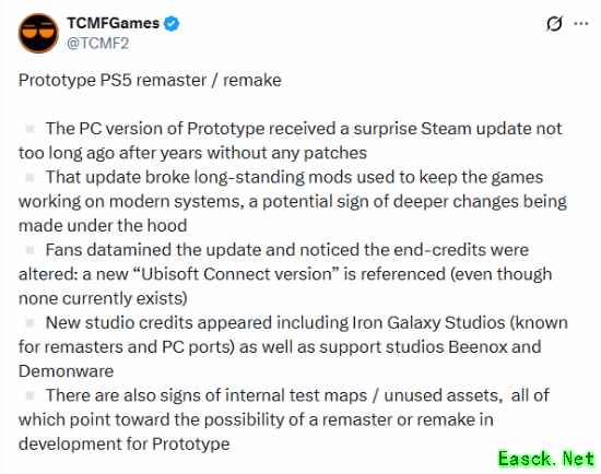 此外,游戏代码中还出现了内部测试地图与未启用素材的痕迹,种种迹象均指向《虐杀原形》可能正在开发 PS5 平台的重制版或复刻版