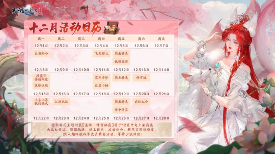 别慌,刀妹这就为大家整合超全养成攻略,更带来十二月活动日历大揭秘,后续每周各类新外观、新活动、新玩法都囊括其中,少侠们抓紧收藏第一时间掌握最新资讯,让你的江湖路走得稳、玩得爽!