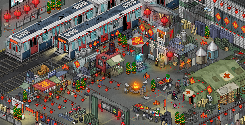 幸存者营地喜迎新春!春节期间,《像素危城》避难所的面貌焕然一新,大量春节元素的加入,将营地装扮得喜庆红火。无论是漫天悬挂的大红灯笼,还是满院张贴的福到临门,都将希望之光照进幸存者们的心房,在危机四伏的世界里找到一片净土。