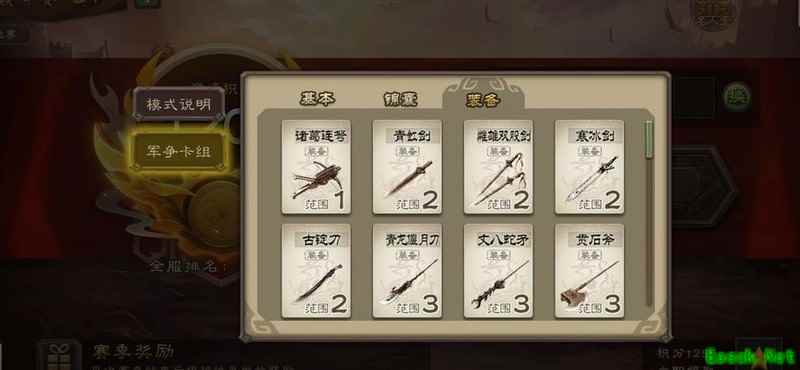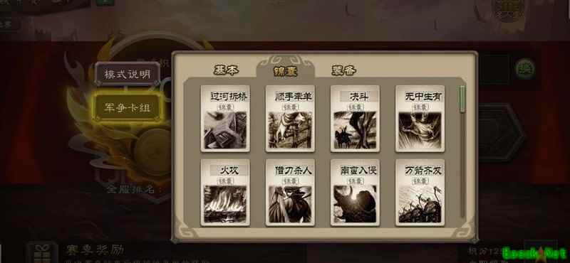 三国杀拥有多种玩法模式,每位玩家都有各自的偏好。我尤其钟爱排位赛。谈及排位,了解其卡组构成至关重要。排位采用的是军争卡组,进入排位界面后选择巅峰赛,再点击左上角的问号,即可查看军争卡组的具体组成与规则说明。