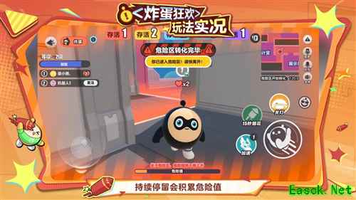 蛋仔们在危险区中持续停留会积累危险值!危险值达到一定值后也会扣除血量哦!