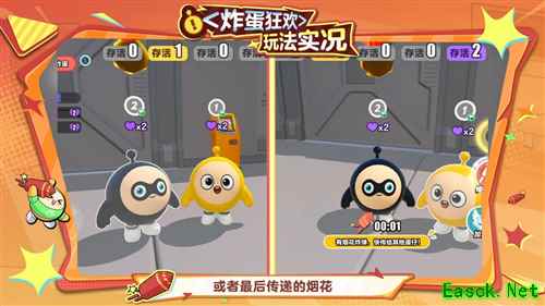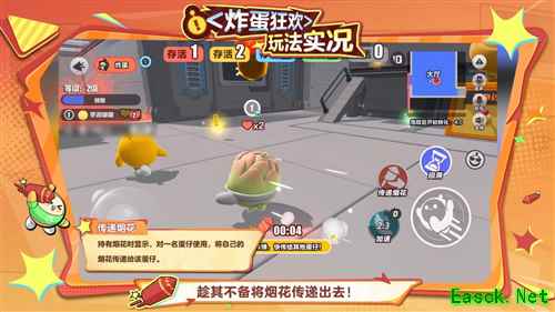 获得烟花的蛋仔可以加速靠近对手,趁其不备将烟花传递出去!烟花爆炸后会扣除持有蛋仔一定血量,血量归零后就会被淘汰啦!