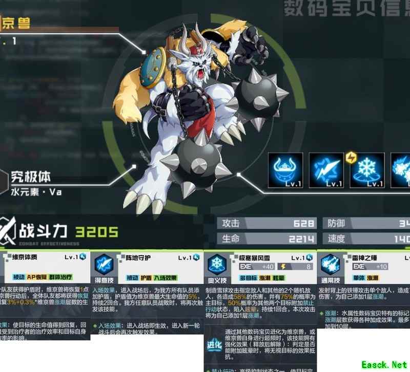 搭配万能的维京兽组成三疫苗阵容,享受属性加成,维京兽控场能力强,还能按自身血量为全队提供护盾。