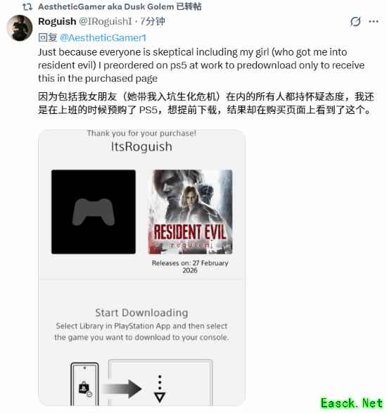 然而,一切突然尘埃落定。Dusk Golem分享了PlayStation商店泄露出的预约预载的游戏封面,里昂赫然就在封面上。