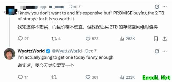 相当一部分玩家在评论区吐槽了WWE和NBA这些体育游戏的游戏大小,认为这也太不合理了,也有部分玩家向这位博主推荐了2TB的存储,表示有这个,玩游戏体验才会更好。