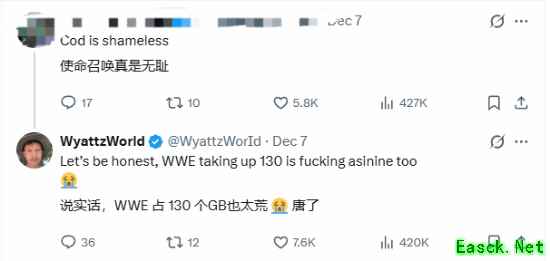 而这关于吐槽游戏文件大小的话题也让不少玩家纷纷下场吐槽,表示现在的游戏大小真是越来越离谱,非常不友好。