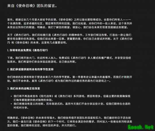 为改善用户反馈与产品表现,动视公布了三项计划: