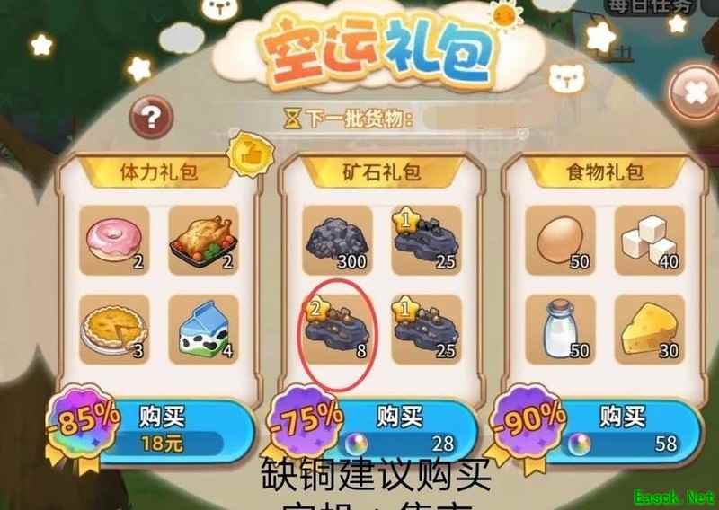 购买空投,每日可得8个铜矿石(用珍珠购)
