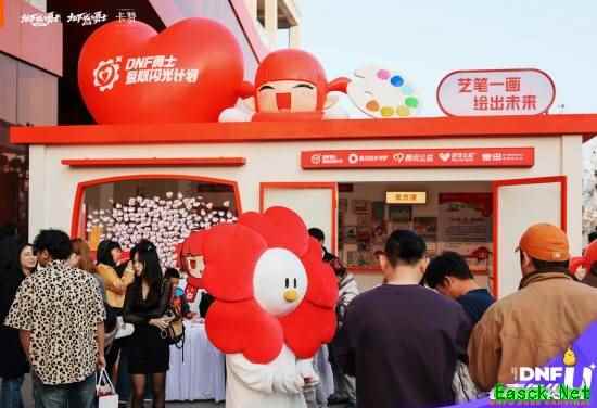 但要说雪人市集里让我印象最为深刻的地方,还是“勇士爱心画展”这一方小小的天地。DNF一直以来都有助学相关的公益活动,号召玩家参与公益助学。看着墙上虽然画功青涩,但充满温度的DNF元素的画作,我想,这份根植于公益的责任感,为这个IP注入了超越游戏本身的人文温度。