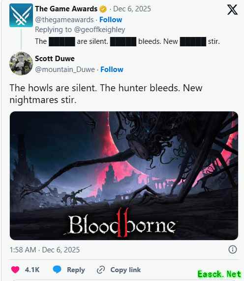 自2015年《血源》登陆PS4以来,粉丝们就不断祈盼续作,或是重制、移植版。每当游戏行业有大型活动,比如PlayStation发布会或其他游戏直播,总会有人满怀希望地期待《血源》的回归。