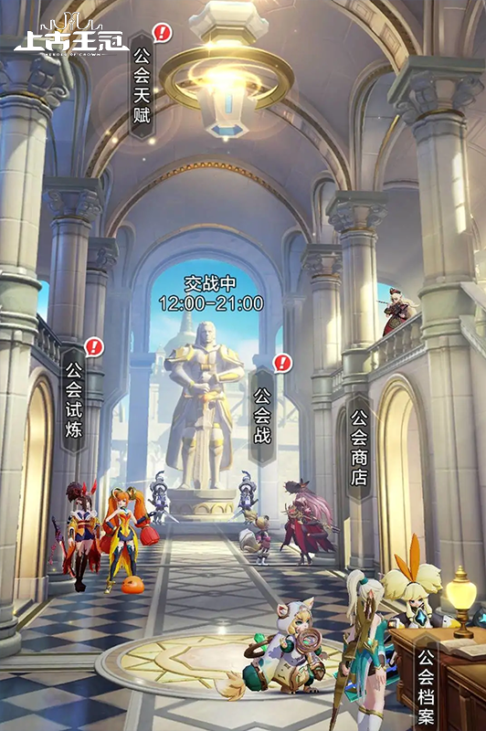 在赛季更新后,公会玩法将产生翻天覆地的变化,我们首先就能发现公会场景已经焕然一新,公会中央新增了雕刻大师·古的奢华石雕,当然,重点还是新增的公会战与公会科技树玩法。