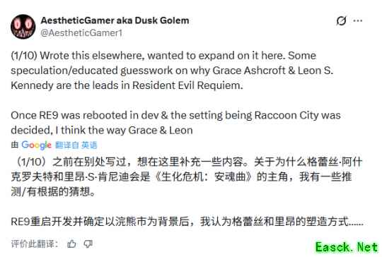 除此之外,Dusk Golem还说出里昂回归的原因,他认为:“如果故事回到浣熊市,让一位亲身经历过浣熊市事件的角色回归是十分合理。他能够带给老玩家一种‘重返故地’的叙事体验,这是许多恐怖作品常用的技巧,但《生化危机》系列此前从未真正这样做过”