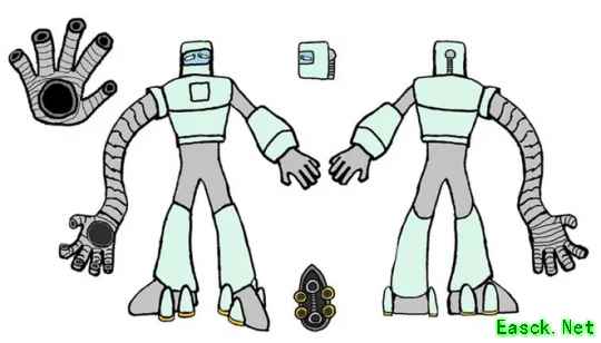 ·本次官方招募设计有着基础模版,官方要求必须按照有着软肢体造型的机器人为原型设计,软肢还要有吸附玩家近身的能力,本文截图是样板示例。