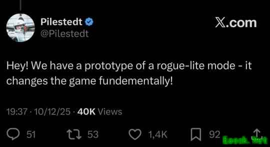 在社交媒体上回答粉丝关于roguelike/无尽模式的提问时,Johan发表了这一回复。此消息也表明,箭头工作室仍然专注于为《绝地潜兵2》开发独特的游戏机制。