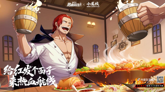 1月21日-2月1日,《航海王热血航线》与小龙坎于北京、广州、杭州、青岛、临沂、深圳、成都等多个城市推出小龙坎主题门店,届时将有新春神秘福利在等待着大家。对门店工作人员大声喊出本次活动口号“来热血航线给红发个面子”,更有惊喜奖品等着你!