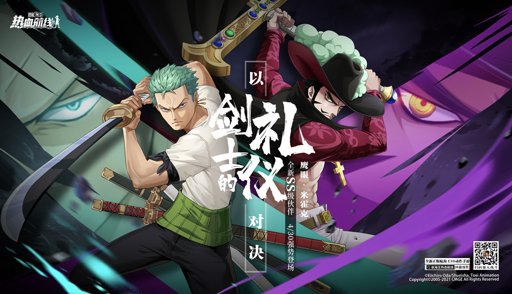 由中手游和朝夕光年联合出品的正版航海王3D动作手游《航海王热血航线》全平台公测火热进行中,全新SS级伙伴米霍克4月30日中午12点正式上线,以剑士的礼仪向船长们发出对决邀请!即刻前往游戏参与活动,就有机会将这位强大剑豪招募麾下哦。