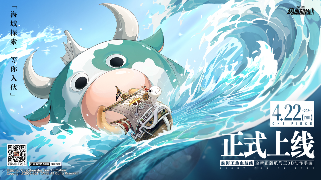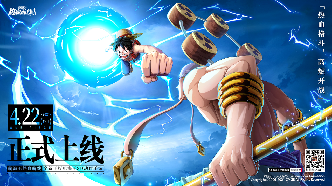 热血格斗,高燃开战。4月22日,由中手游和朝夕光年联合出品的正版航海王3D动作手游《航海王热血航线》开启公测,登顶iOS免费榜!千万海米热血起航,目标是ONE PIECE!