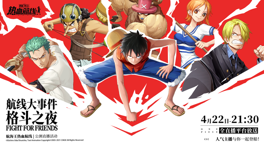 今日,《航海王》正版授权3D动作手游《航海王热血航线》正式上线啦!今晚,“航线大事件-格斗之夜”全平台直播活动也将于21:30正式开启。游戏策划、张大仙、小团团今晚直播会有什么惊喜?一起来看看吧!