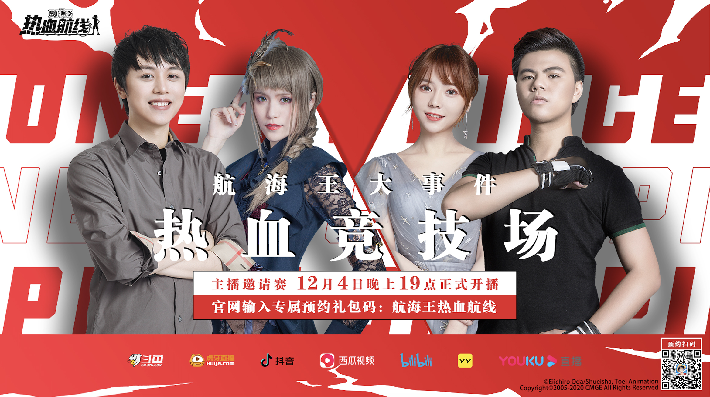 是不是早就心动了?《航海王热血航线》“热血竞技场”直播之夜将于12月4日19点~22点,在抖音、西瓜视频、斗鱼、虎牙、爱奇艺、优酷、YY直播等多个平台同步开播,一起来强势围观!看看什么是“真能打”的《海贼王》手游!