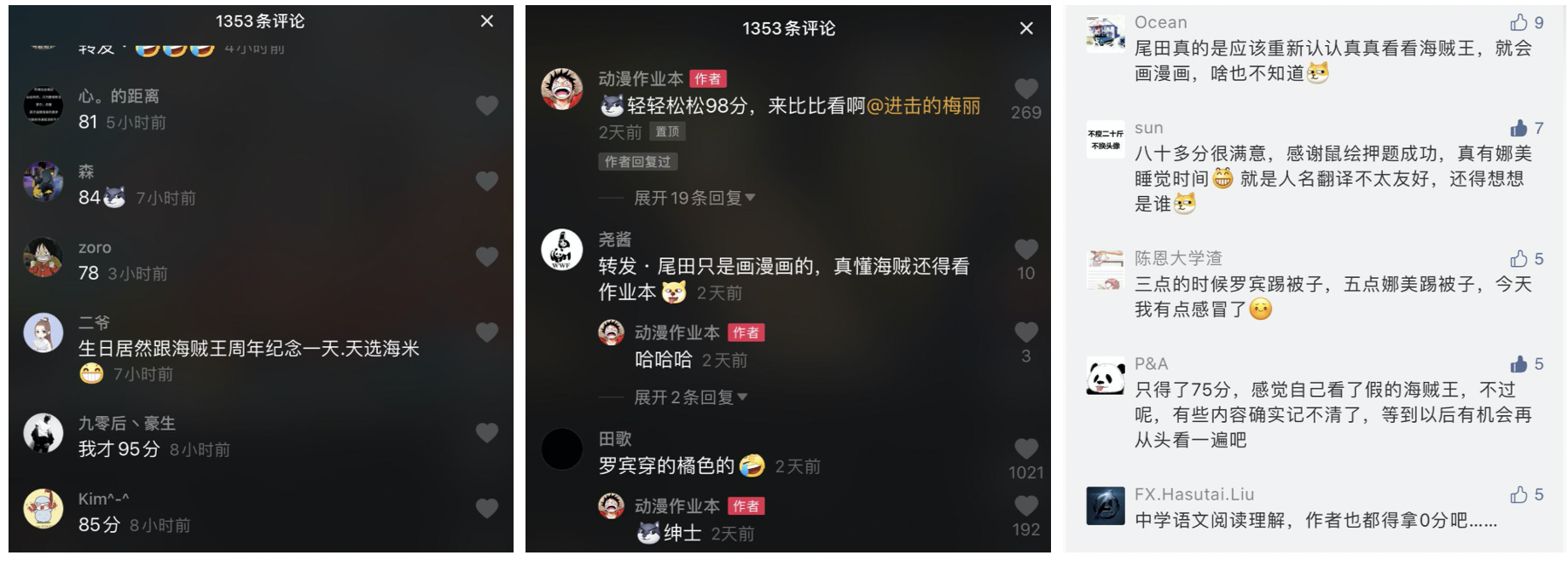 在某博、某音、某站、朋友圈,无不是各大海米的“惨叫声”,不少人高呼“这20年来看的难道是假的ONE PIECE”。但也有部分高分粉丝调侃“尾田只是个画漫画的”,还不如自己懂得多。甚至部分日本粉丝民间自译,参与《航海王热血航线》入团测试,挑战中国海米。
