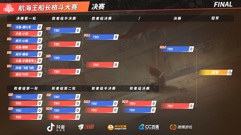 比赛当天,还有策划面对面等互动环节,想了解新鲜游戏资讯,就通过游戏内入口、斗鱼、虎牙、CC直播,或者关注游戏抖音官方账号@航海王热血航线,微博游戏官方账号@航海王热血航线均可观看6月12日17:00开始的决赛直播!