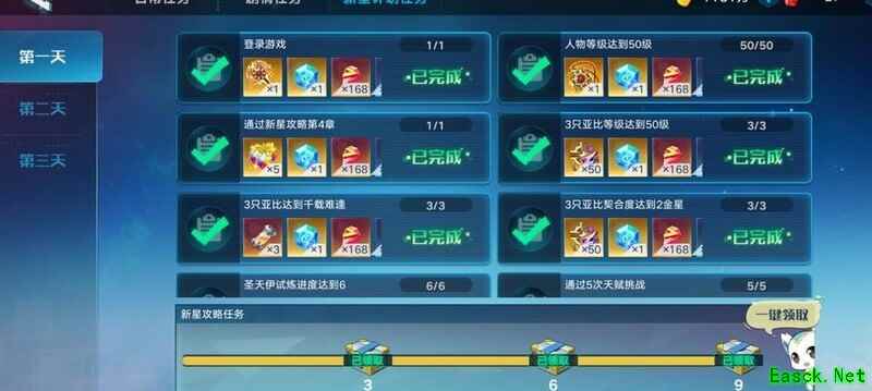 新星计划每日发布任务,首日11个,次日与第三日各10个,每完成一项可获晶石,总计31枚。