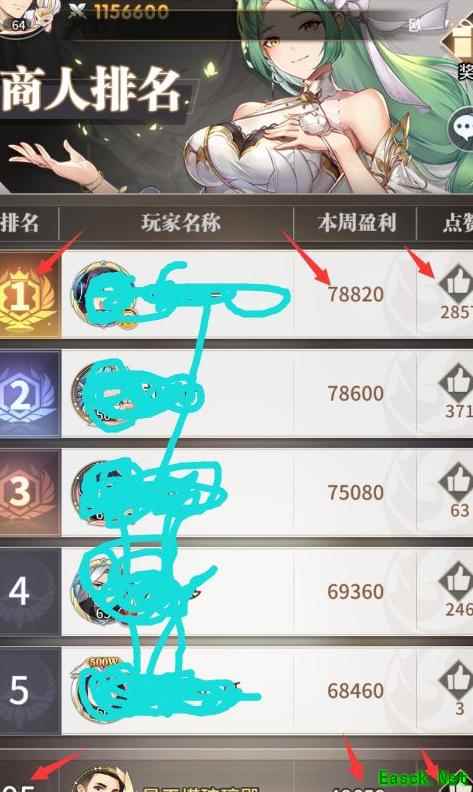 3月30日撰写此文时,游戏已于3月16日公测。上周更新后,我的排名从第一下滑至第95位。只有排名前三的玩家才会获得其他人的点赞认可,而图中红色箭头所示的点赞情况足以证明我所言非虚。