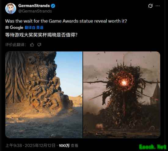 今日,推特博主@GermanStrands发文向玩家们询问:“TGA神秘雕像的真面目是否符合你的预期?”