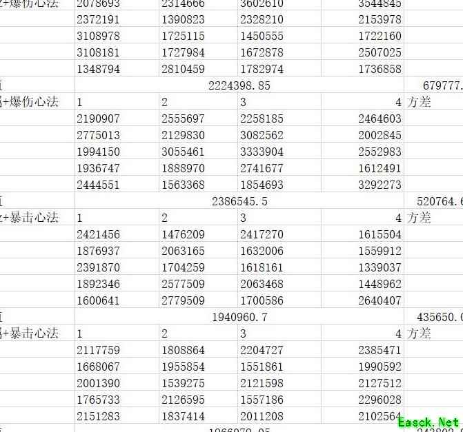 由于测试时间有限,数据量偏少,从平均值看专属加爆伤心法表现最佳,但方差较大。理论上罪业搭配爆伤心法伤害应更高,当前结果可能受限于样本不足,尚未完全体现真实水平。