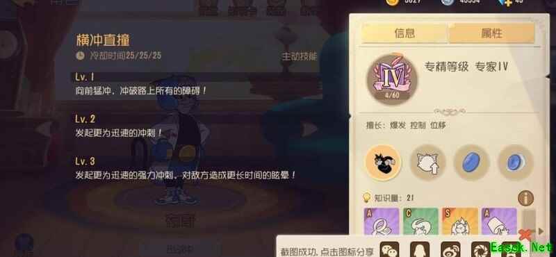 技能分三级,逐级提升:加速起身、增强攻击,最高可概率一击制敌。