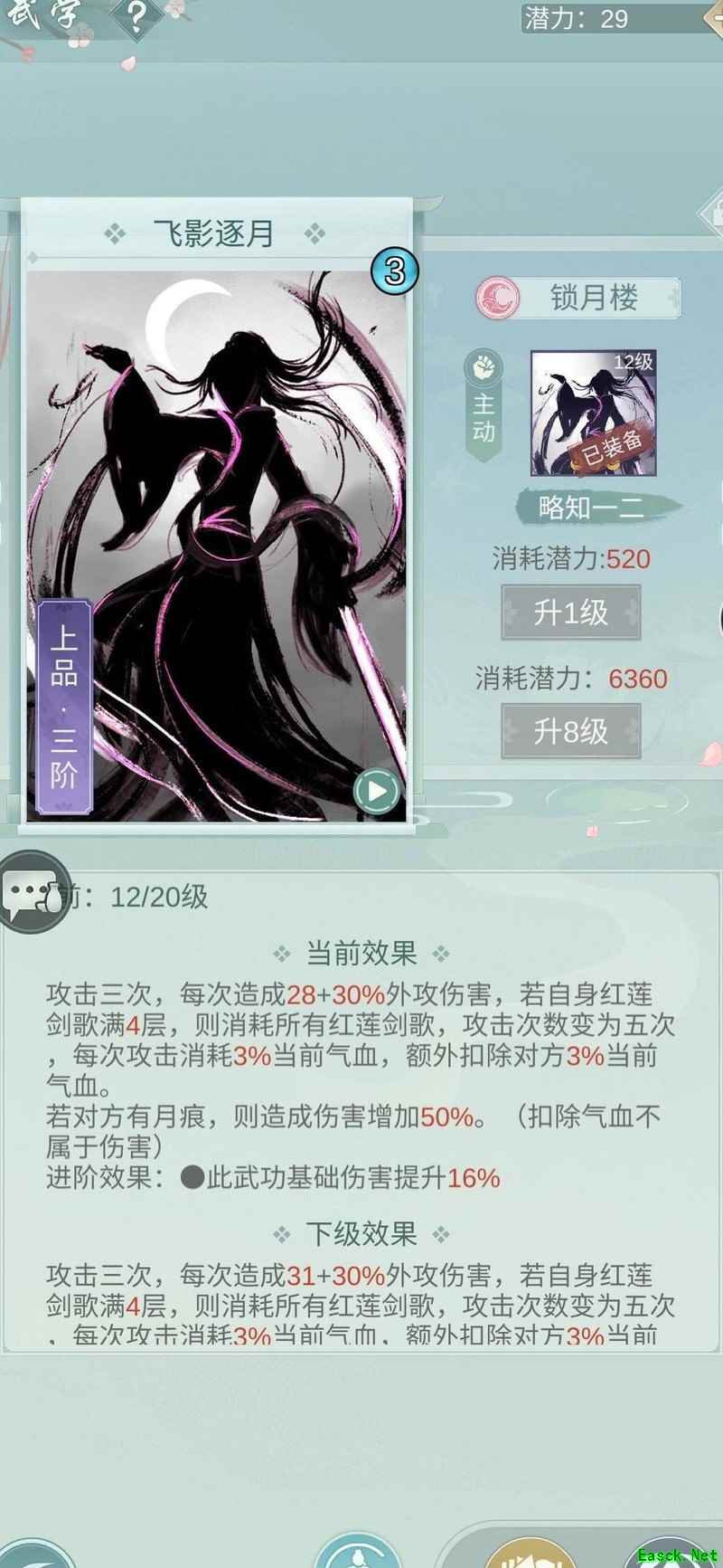 飞星逐月乃锁月精髓,需完成四层红莲剑歌与月痕方显完整功效。