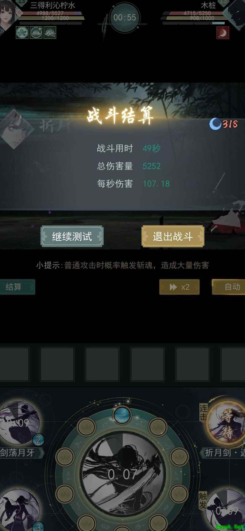 大家看到这里应该觉得还可以吧,关键就是把握好我这折月剑的释放时机,根据对手行动条来操作。