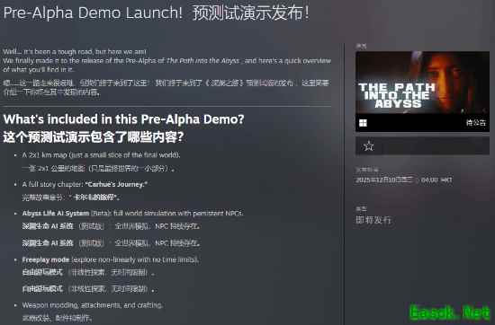 12月14日,一款名为《The Path Into The Abyss(通往深渊之路)》的硬核第一人称生存射击游戏提供了免费试玩。