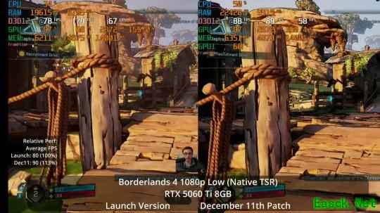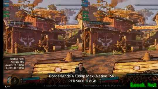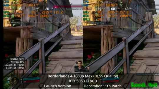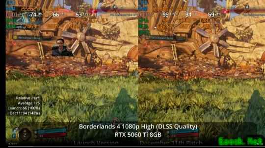 油管频道Daniel Owen测试了此次更新。在配备8GB显存的显卡上,性能提升非常显著。得益于此次更新,现在即使是像RTX 5060Ti 8GB这样的显卡,也能在高画质设置下以更高的帧数运行《无主之地4》。在最高画质设置下,性能几乎可以翻倍。