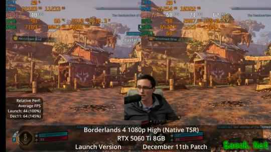 1080P,高画质,原生TSR,首发版 vs 12.11补丁后帧数对比(44 vs 64),提升45%