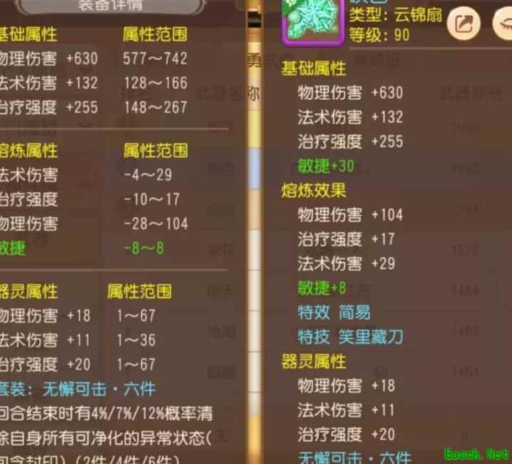初始速度为93,完全熔炼后可达114,即便对速度要求极高的封系玩家也能轻松驾驭。更配有晶清诀这一强力特技,兼具群体解封与回血效果,实用性强,适合所有门派佩戴使用。