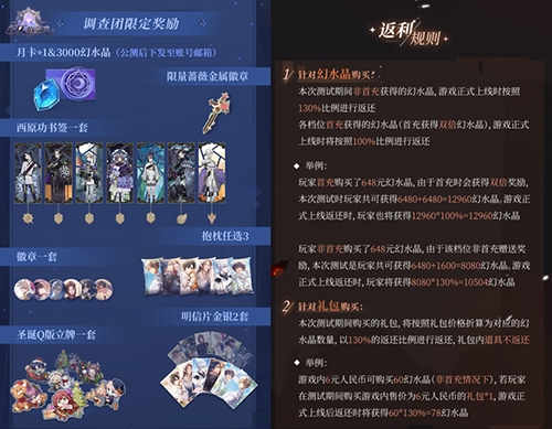 此外,《少女的王座》将于本次限量付费删档测试期间开启充值领返利福利活动。公主殿下在本次测试期间,通过非首充获得的幻水晶,将在游戏正式上线时按照130%比例进行返还。每档首次充值获得的幻水晶(首充获得双倍幻水晶),游戏正式上线时按照100%比例进行返还。不仅如此,本次封闭测试期间购买的礼包,将按照礼包价格折算为对应的幻水晶数量,以130%的返还比例进行回馈,礼包内道具不返还。更多返利详情请公主殿下留意官方公告信息。