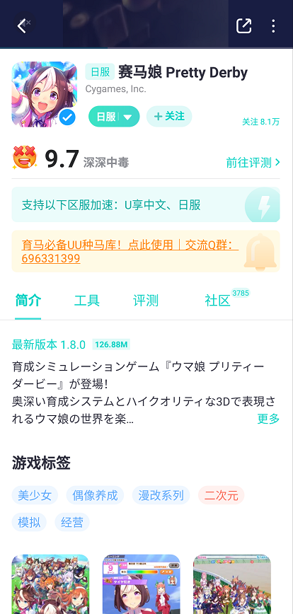 网易UU手游加速器拥有全球领先的WiFi/4G双通道极加速技术,可以完美解决游戏网络信号差导致的断线卡顿问题。同时,网易UU手游加速器还有智能分流功能,只加速游戏相关流量,不会耗用与游戏无关流量。除此之外,网易UU手游加速器还拥有高品质社区,汇聚了全球优质玩家,在这里你可以和其他小伙伴讨论游戏内容、查看各种攻略,还能获取各种最新游戏资讯。在网易UU手游加速器的助力下,我们再也不用担心玩《赛马娘》时语言不通,网络卡顿等问题了。