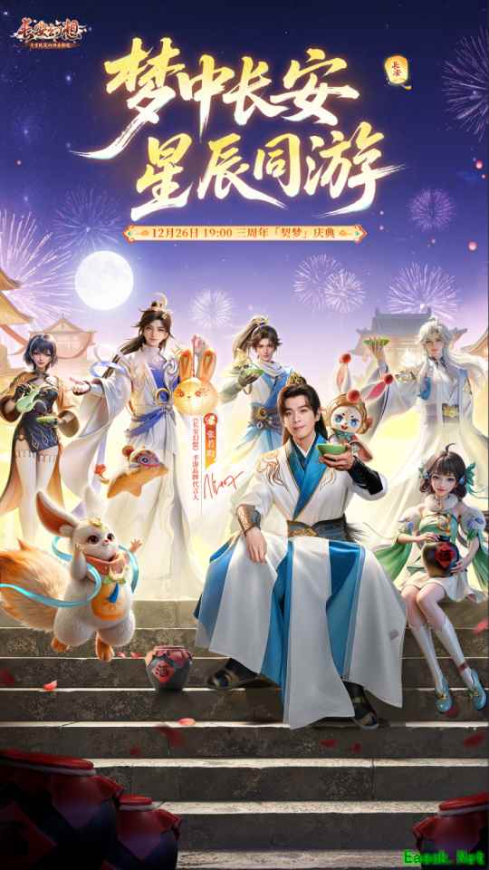 官方还将在12月26日19:00的官方抖音直播中开启三周年「契梦」庆典,代言人张若昀将与御灵师共聚直播间,送出总价值超万元的实物福利,还将化身福利官揭晓长安幻想首个周年福星锦鲤。游戏内除了专属直播入口,还有烟花大会、周年庆红包雨活动实现同频共庆。