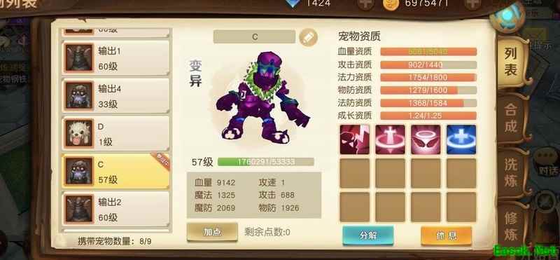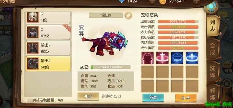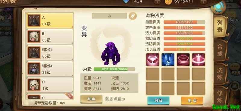 用果实反复洗练宠物,直至变为宝宝形态;若金币充足,可继续使用大果实洗练,追求变异,最终获得成长值理想的优质宠物。