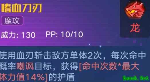 一技能可对全体敌人发动攻击,随机吸取目标1级魔攻或暴击等级,或附加80点伤害;若出手前已受到伤害,技能伤害提升50%。
