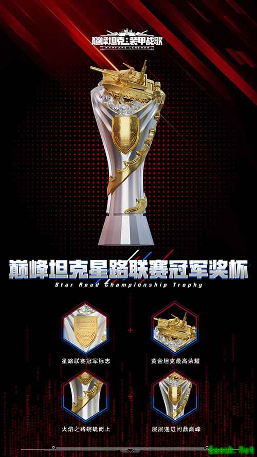 作为星路赛事系列的荣耀标志,2025年星路冠军奖杯承袭去年的设计,奖杯以银色为底,被螺旋上升的金色火焰包围,而代表最高荣耀的黄金坦克,乘着风高歌猛进,突破一切硝烟后最终抵达巅峰。将会是哪支战队在总决赛剑指巅峰?让我们拭目以待!