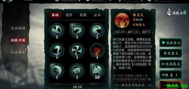 炽刃技能组合如下