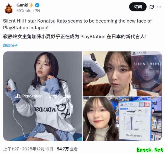 她的影响力已超越个人频道。据推特用户Genki_JPN指出,加藤很可能成为PlayStation在日本的代言新面孔——她身披该品牌服饰的广告写真已在筹备中。从沉浸角色的演员到带动消费风潮的偶像,加藤小夏正以独特轨迹重塑日本游戏明星的定义。