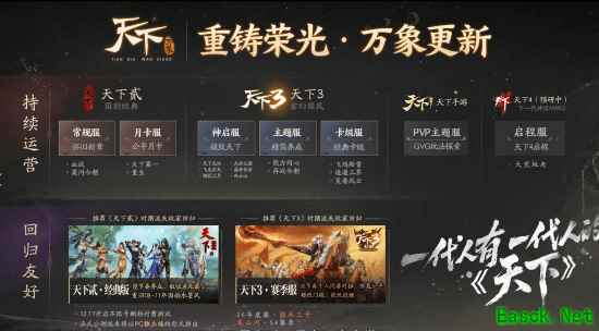 更换引擎,多端互通,资源置换……这只是万象更新的第一步,在新引擎加持下呈现出种种焕新生命力的表现,无一不证明着,《天下:万象》是我们重铸荣光的起点。在重铸荣光的这条路上,我们会肩负大家的期待,与各位少侠携手,坚定地走下去!