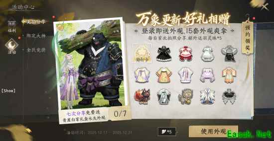 回望过去十余载,一路走来离不开每位少侠的支持与热爱。为了感谢大家坚定不移的支持与厚爱,在即将到来的《天下:万象》公测之际,我们决定对百衣补贴进行空前的福利加码,把所有家底都掏出来,只为给大家送上看得见、拿得到的福利,才能展现我们的诚意与感谢!无任何门槛,每日登录《天下:万象》PC端或移动端即可轻松带回家!通过美拍分享每日打卡时装,还可获得婉灵熊义永久时装~