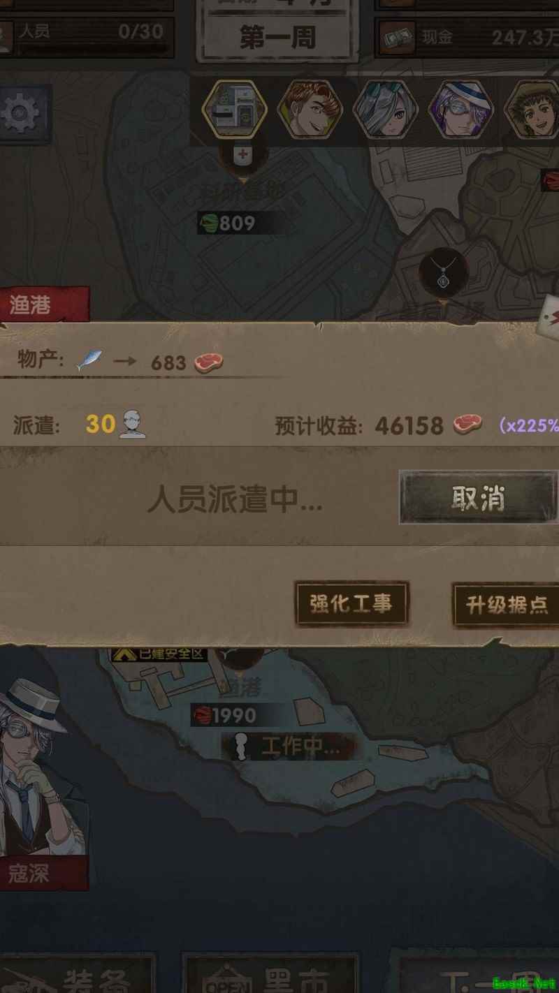 开局时利用地堡优先选人的机制,首选食物贩子,他能让你在第一天就拥有五级基地,并且初始人口轻松突破十人,同时带来极高的食物产量。若市场食物价格偏高,可通过采集并出售食物快速积累资金,提升整体实力。前期核心角色为侦探、文案和食物贩子,其中贩子性价比高时应优先多购,用食物收入推动升级与人口增长。占领区域一律采用侦查模式,无需购置枪械或频繁搜索。文案每月至少招聘八次,初期无需升级,后期视资金情况可升至二星或三星。侦探和食物贩子应尽早升满级,以确保人口快速增长。当人口达到三四十时,优先攻占鱼村;若食物收益不足,可先拿下一块过渡地皮,如下城区或上城区,根据实际情况灵活选择。若运气好获得二星食物贩子,卖食物所得资金甚至足以直接冲击渔村。拿下渔村后,食物与人口将迎来第二波爆发式增长。百人规模后,再集中力量攻克军事基地。若资金紧张,食物变现困难,可招募建筑师,通过出售安全区炒卖地皮获取巨额资金——例如利山庄可售数千万,下城区也能卖百万左右。利用这笔收入强化战力,攻下军事基地后,再依靠庞大人口逐步回购此前出售的地皮,实现资源与实力的良性循环。