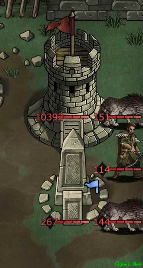 攻击主塔将从右侧刷新4个敌方单位,若位置拥挤则两个移至左侧,最多触发7次。