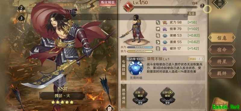 推荐武将:前排或中军皆可选用。